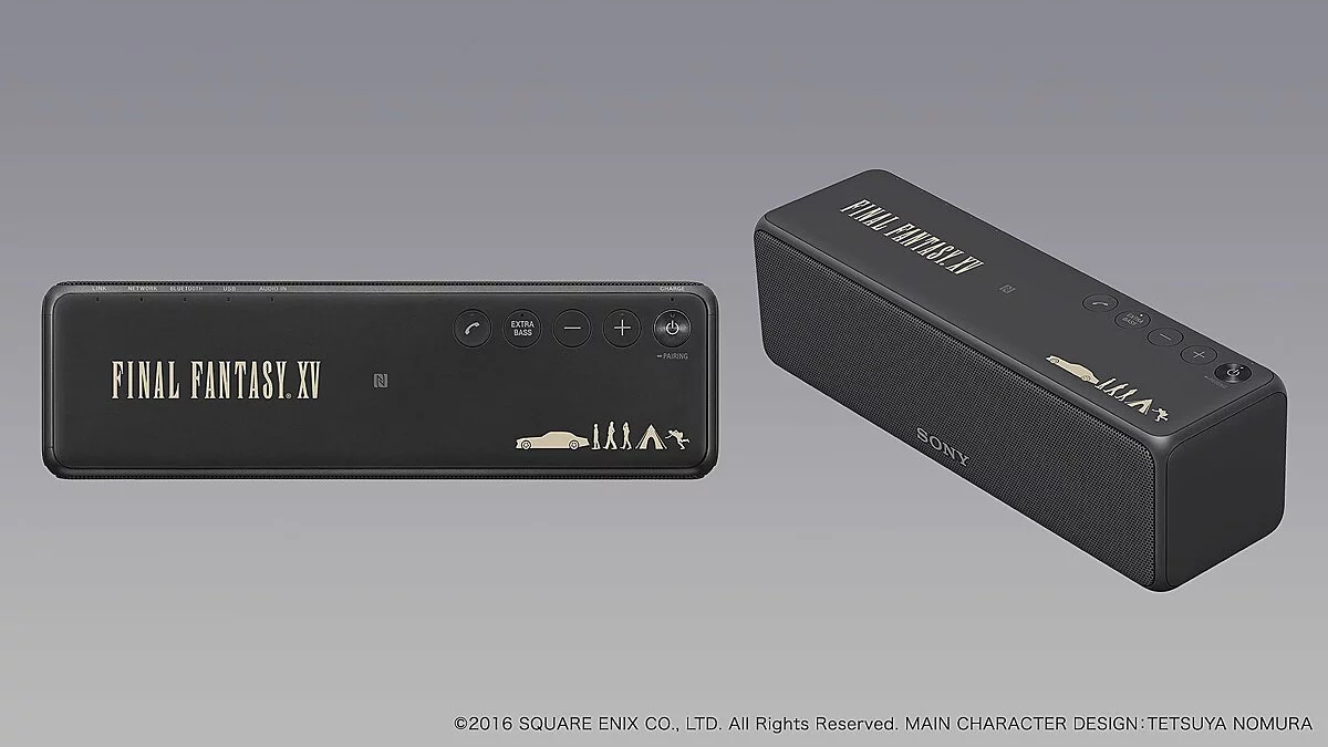 Ограниченное издание Final Fantasy XV Walkman, портативная колонка SRS-HG1 Bluetooth и наушники MDR-100A. Плеер может похвастаться изображением героев игры в пиксель-арт стиле и логотипом «XV» на крышке. За дизайн этого устройства отвечали работники Sony, а наушники и колонку делал сам Тетсуя Номура (Tetsuya Nomura), главный дизайнер серии и глава разработки ремейка Final Fantasy VII и Kingdom Hearts 3. Вид новинок можно оценить на изображениях: