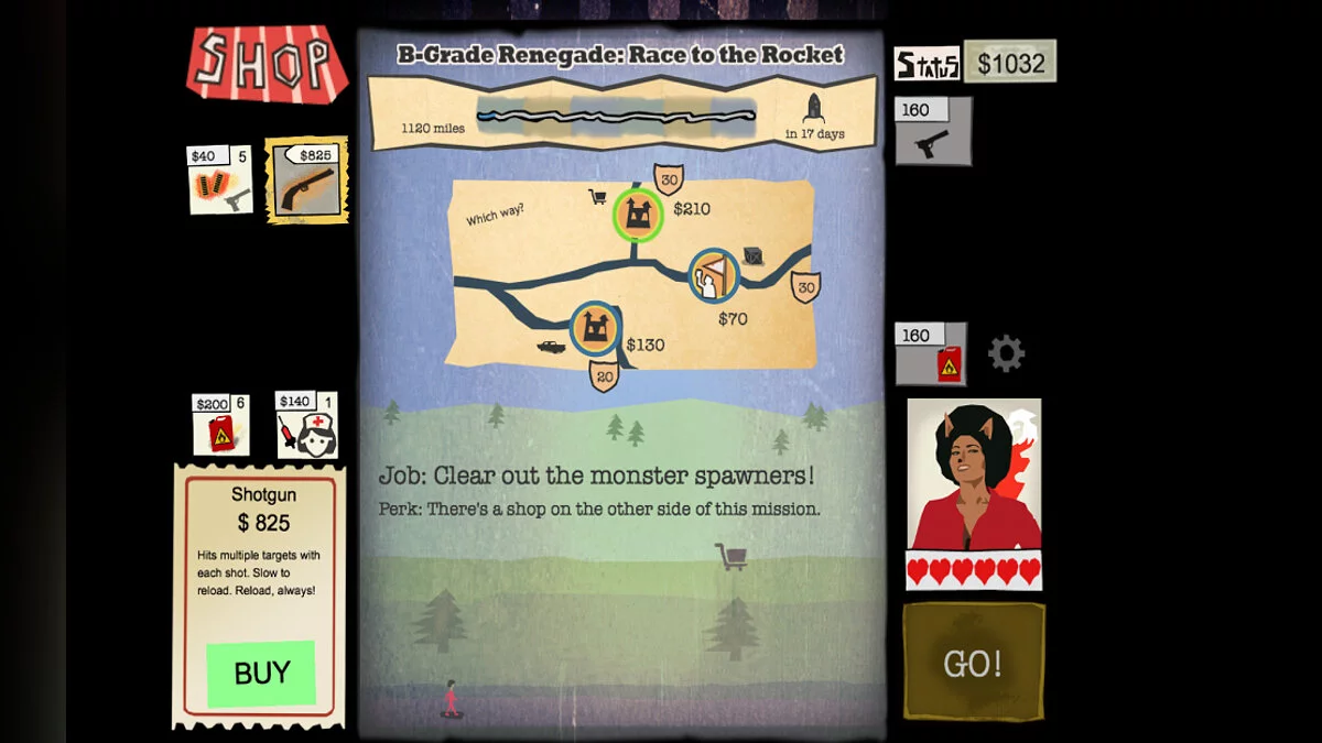 Уровни B-Grade Renegade — процедурно генерируемые. Фокси может ездить на куче разных машин, останавливаться в магазинах, набивать мешки — все это поможет пересечь страну как можно быстрее, чтобы добраться до цели.