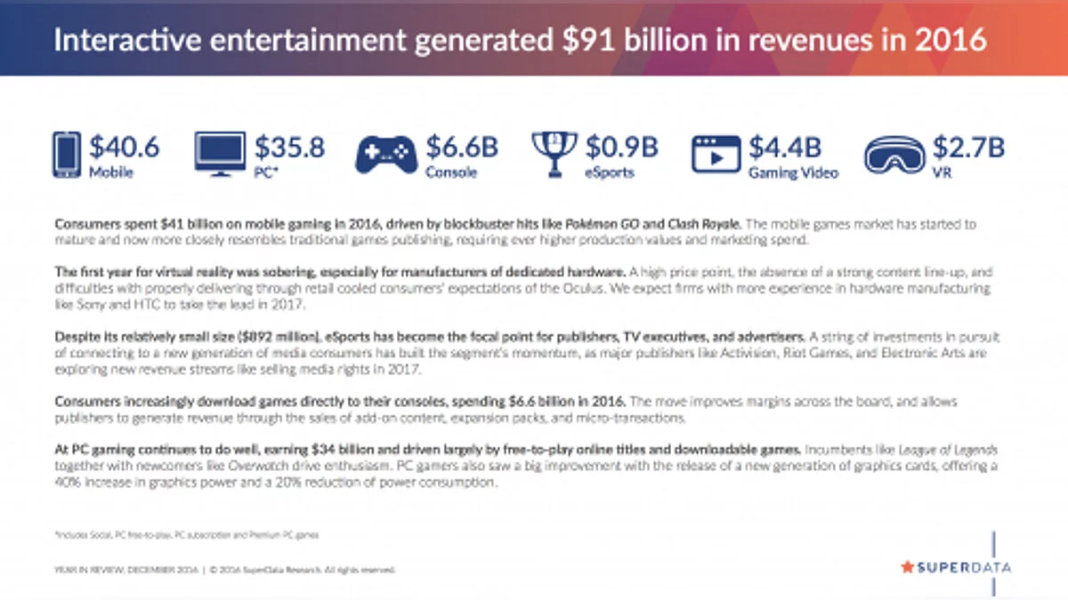 Исследовательская компания SuperData подвела итоги игрового рынка в 2016 году и представила свежий отчет.