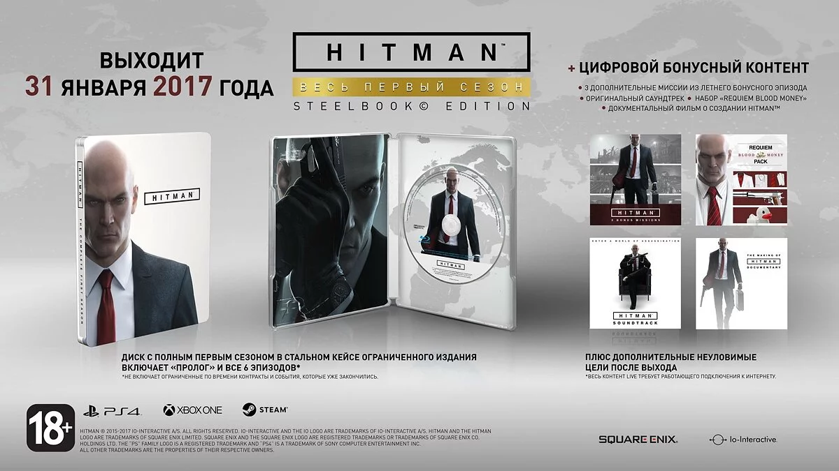 Выход дискового издания Hitman состоится 31 января на PC, PS4 и Xbox One.