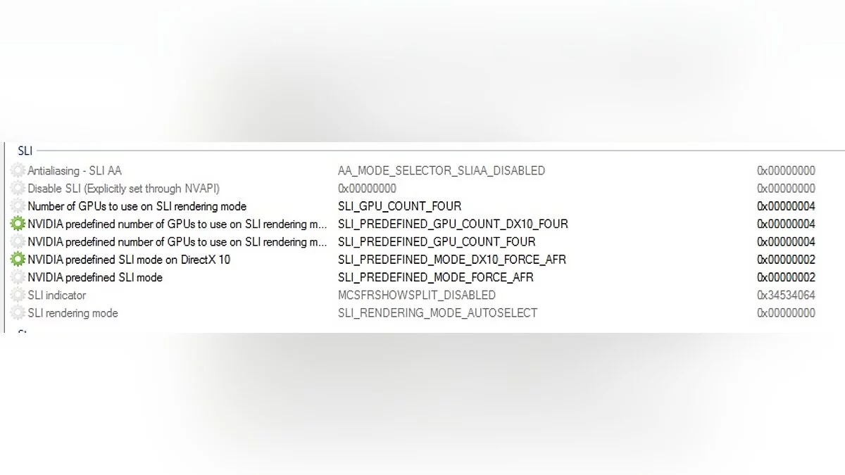 - Установите SLI-режим DX 10 — SLI_PREDEFINED_MODE_DX10_FORCE_AFR;