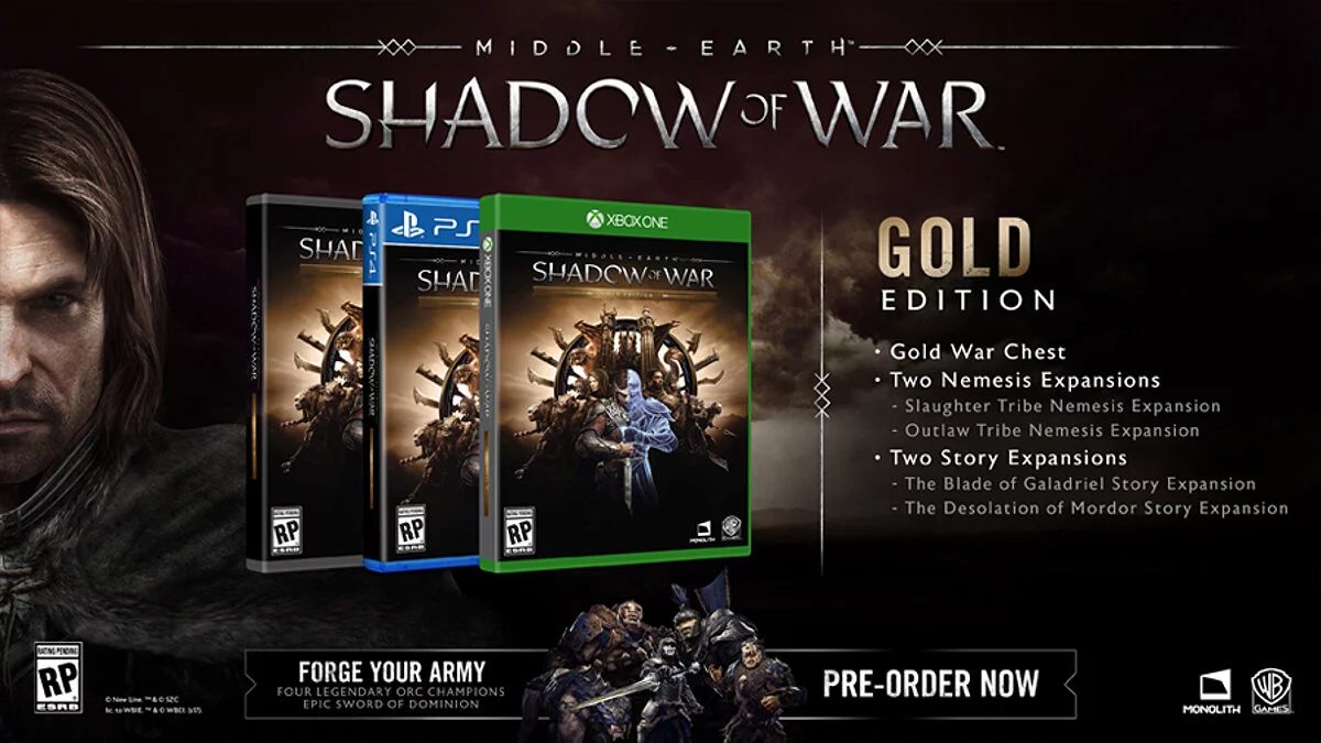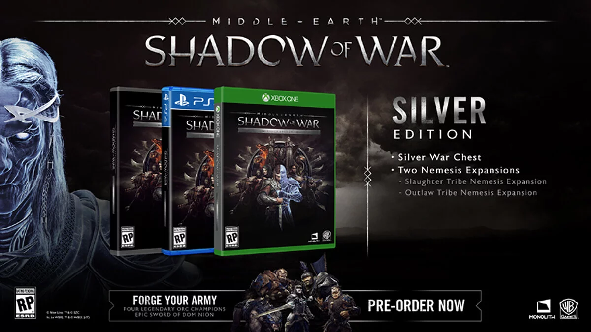 Компания WB Games сегодня представила три вида коллекционных изданий Middle-earth: Shadow Of War, которые содержат интересный контент, но будут дорогими или очень и очень дорогими, а также объявила бонусы за предварительный заказ.