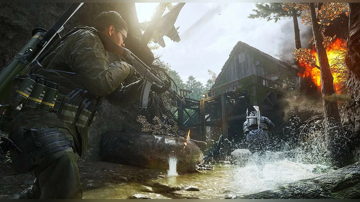 - Creek отправит игроков в разрушенную деревню, где укрытие — единственное, что может спасти игрока от неминуемой гибели. Особенность карты — это зияющий овраг, делящий ее на две части. Карта идеально подходит для снайперов и любителей дальнего боя.