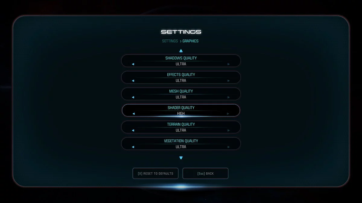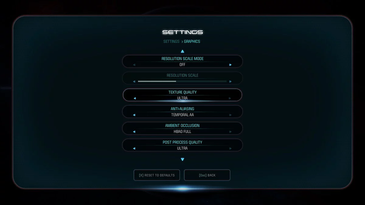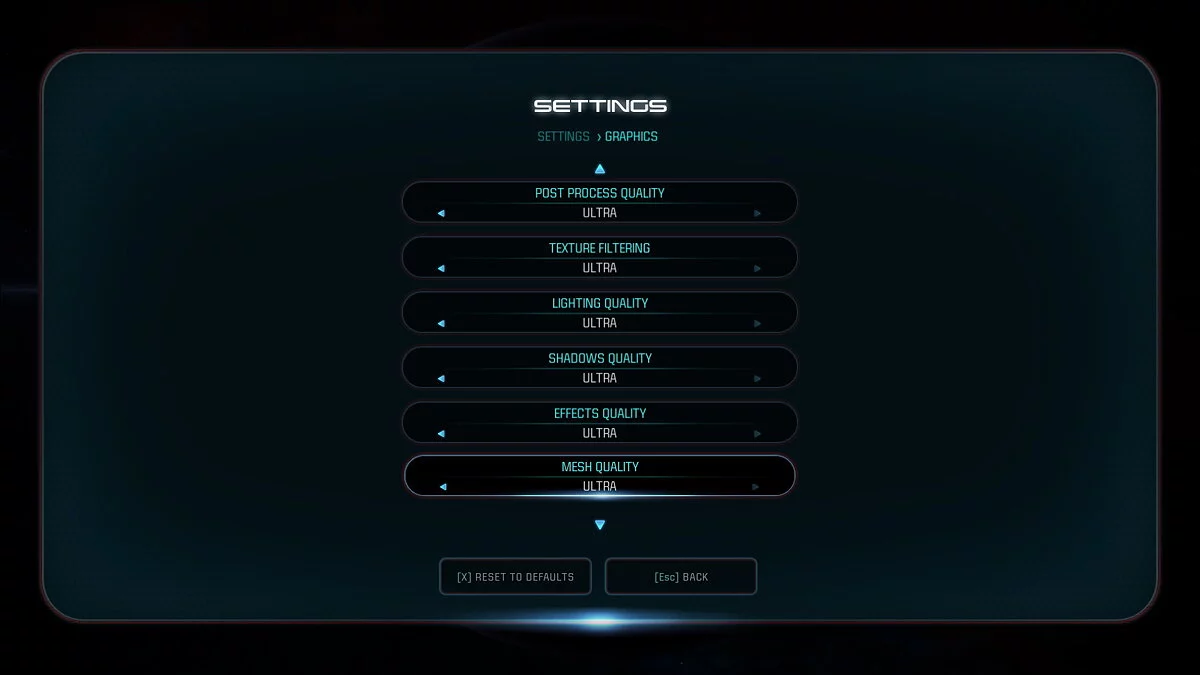 На изображениях ниже вы можете рассмотреть графическое меню Mass Effect: Andromeda и предоставляемые опции: