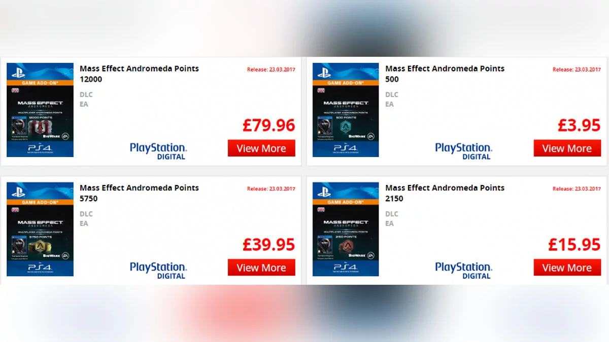 Таким образом, Andromeda Points полностью копируют BioWare Points из Mass Effect 3, и их также можно будет заработать при успешном выполнении заданий во время прохождения миссий кооперативного многопользовательского режима. Цены, традиционно, не гуманные, так что это удовольствие только для самых обеспеченных игроков: