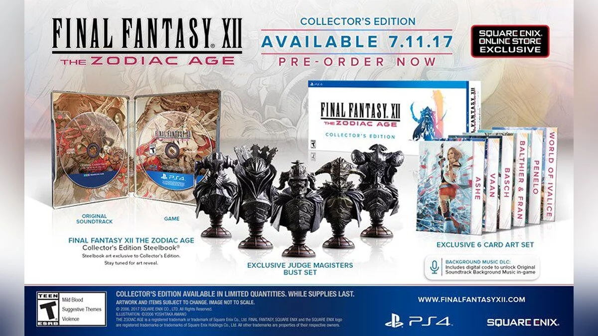 Square Enix во время PAX East 2017 анонсировала коллекционное издание своей Final Fantasy XII: The Zodiac Age — переосмысления двенадцатой части именитой серии для PlayStation 4.