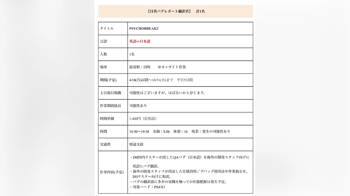 В представленном сообщении говорится, что студия-разработчик Tango Gameworks ищет переводчика для проекта Psycho Break 2 — именно под подобным названием оригинальная The Evil Within была выпущена в Японии. В объявлении указаны PS4 и Xbox One, что может намекать на вероятные платформы, где появится игра.