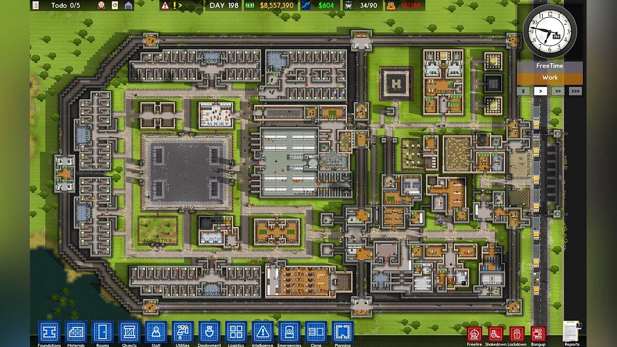 Помимо основных режимов кампании и песочницы, вы можете сыграть в режиме побега, где будет нужно сбежать из собственноручно созданных творений. Prison Architect вдохновлена такой классикой, как Dungeon Keeper, Dwarf Fortress и Theme Hospital, и была очень популярна на ПК.