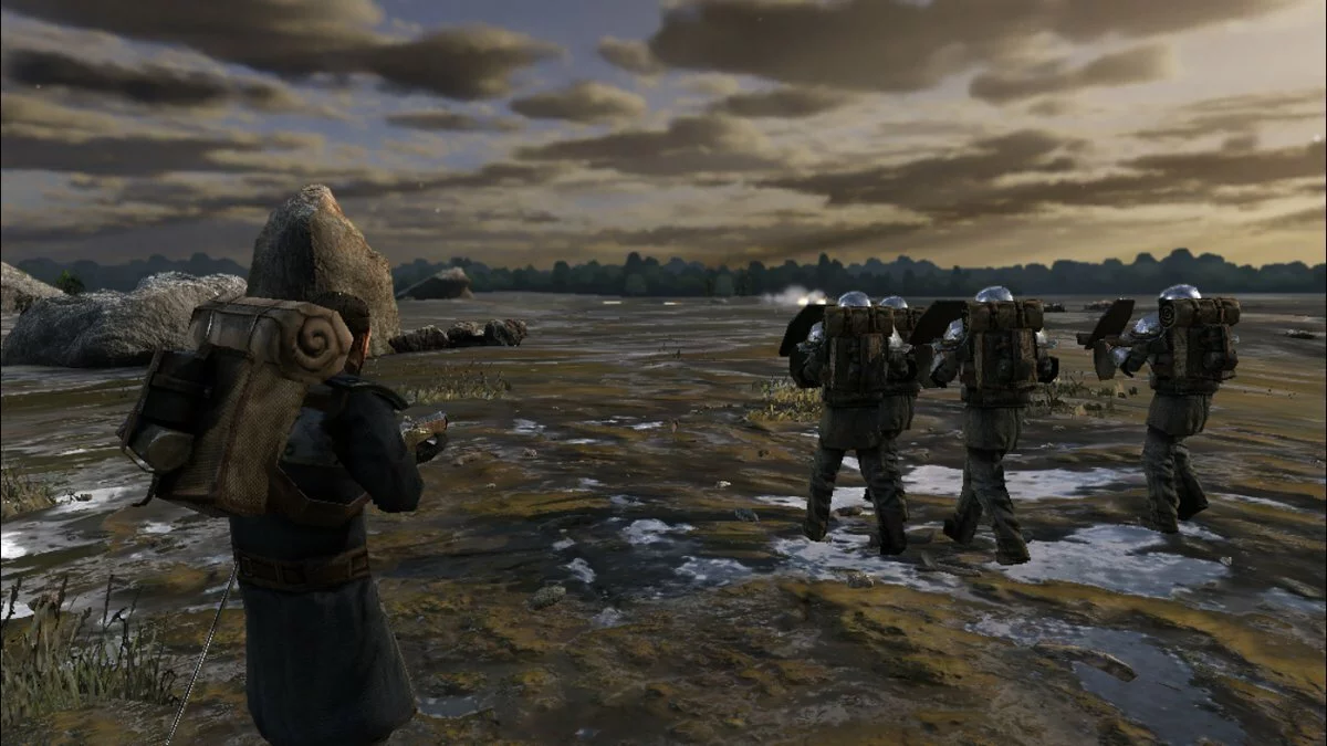 В Noblemen: 1896 игрок находится в личине тяжело бронированного солдата, обладающего мощной винтовкой и массивным щитом. На видео протагонист с большой скоростью движется по полю боя, уничтожая противников и защищаясь на открытой местности от выстрелов щитом.