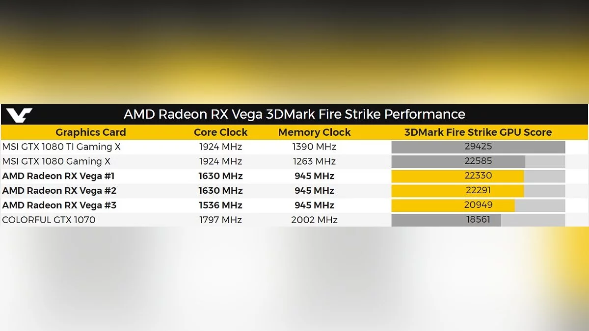 Ожидалось, что производительность игровой RX Vega будет находиться между GTX1080 и GTX1080Ti. Из данных результатов можно видеть, что Radeon RX Vega будет очень близка к GTX1080 по производительности.