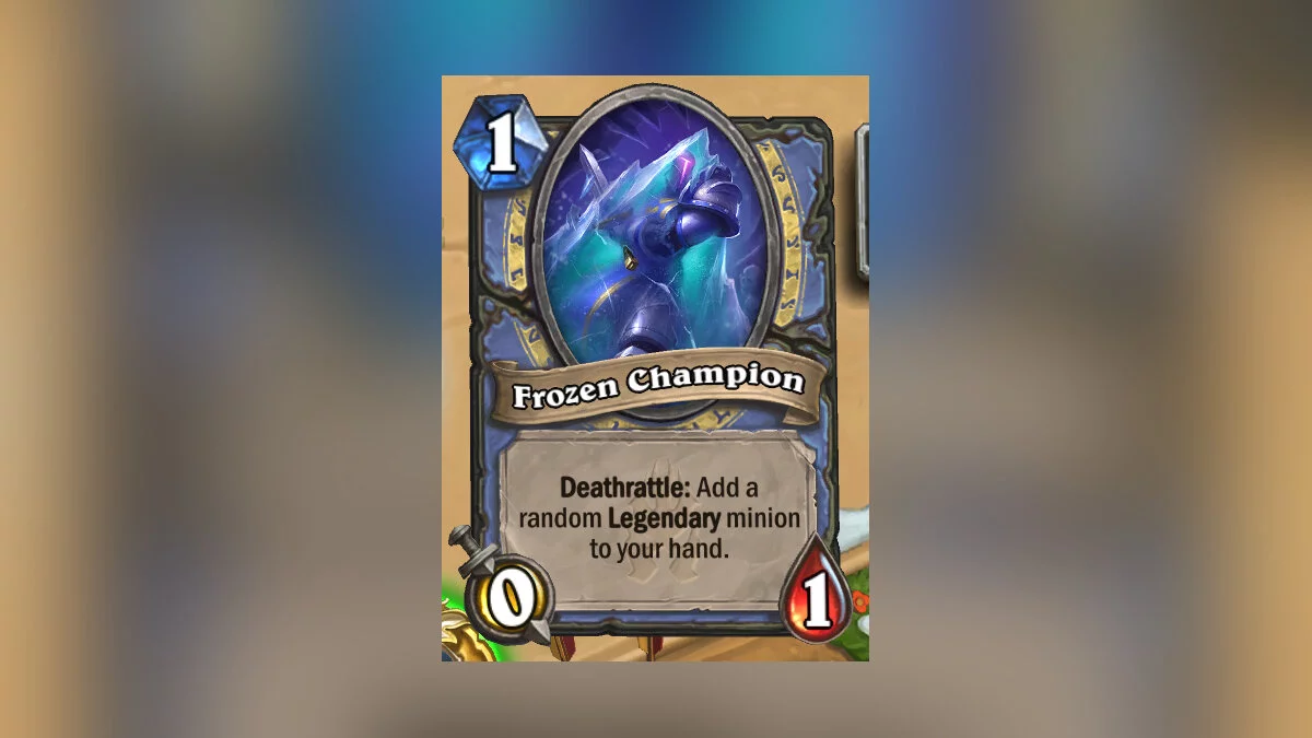 Учитывая, что местом действия обновления является Цитадель Ледяной Короны, сердце крепости Короля-лича, было довольно ожидаемо увидеть карту его слуги Синдрагосы. Она будет легендарной картой Мага за 8 маны с характеристиками 8/8. С появлением на игровом поле она призывает двух Ледяных Чемпионов с характеристиками 0/1 и достаточно сильным предсмертным хрипом — после смерти они добавляют в руку игрока двух случайных легендарных существ.