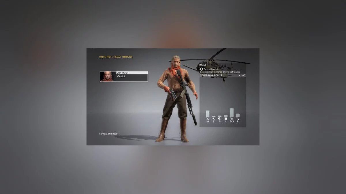 Спустя почти два года после выхода Metal Gear Solid V: The Phantom Pain в игру добавят нового игрового персонажа. Игроки смогут взять управление над Револьвером Оцелотом во время миссии Forward Operating Base. Он является важной частью обновления, которое запланировано на август 2017 года.