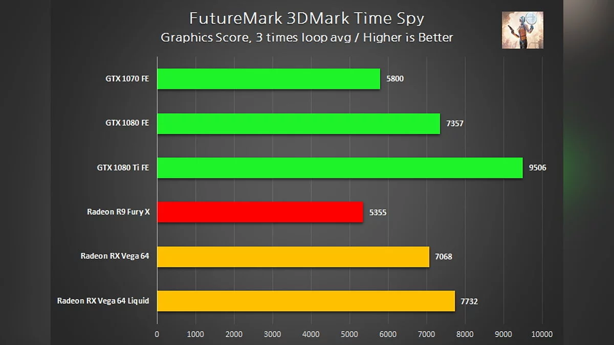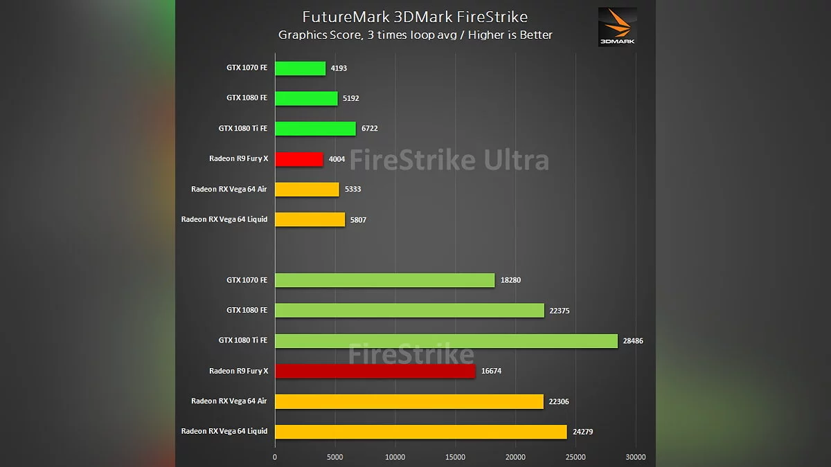 Согласно бенчмаркам, в 3DMark видеокарта AMD RX Vega 64 медленнее, чем референсная версия GTX1080.