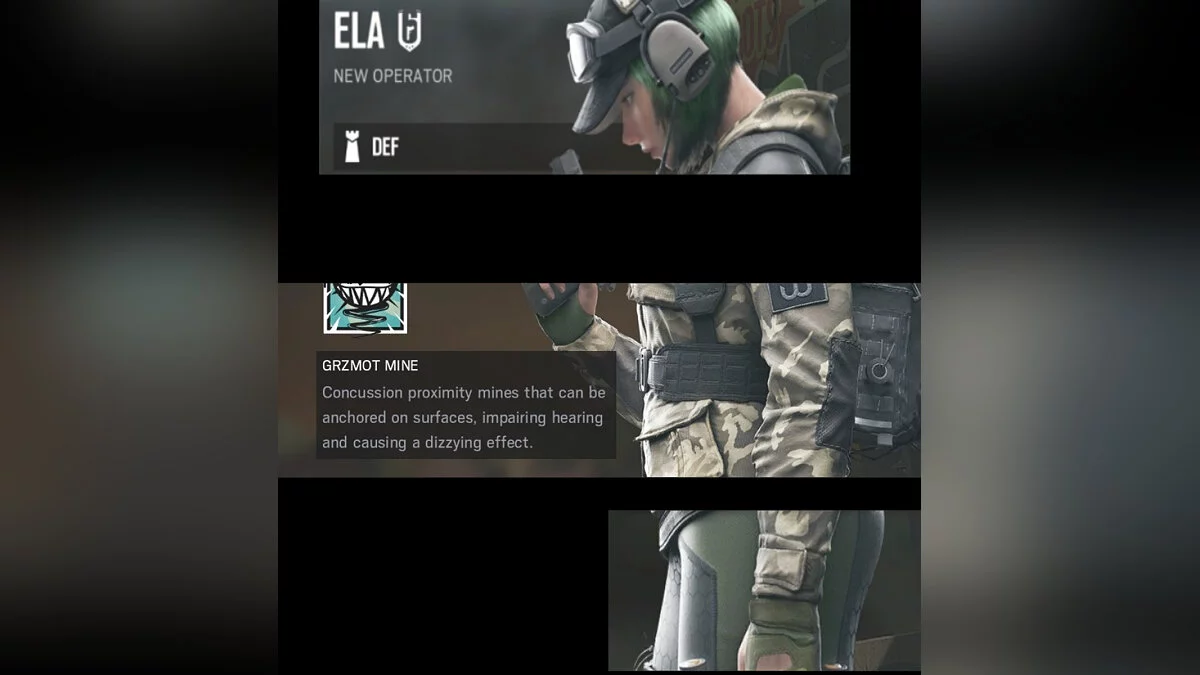 Двое из операторов родом из Гонконга, третий — поляк. Первый оператор — Ela, защитник, главной способностью которой является Grzmot Mine — мина, которая крепится к поверхностям. Мина нарушает слух и вызывает головокружительный эффект при срабатывании.