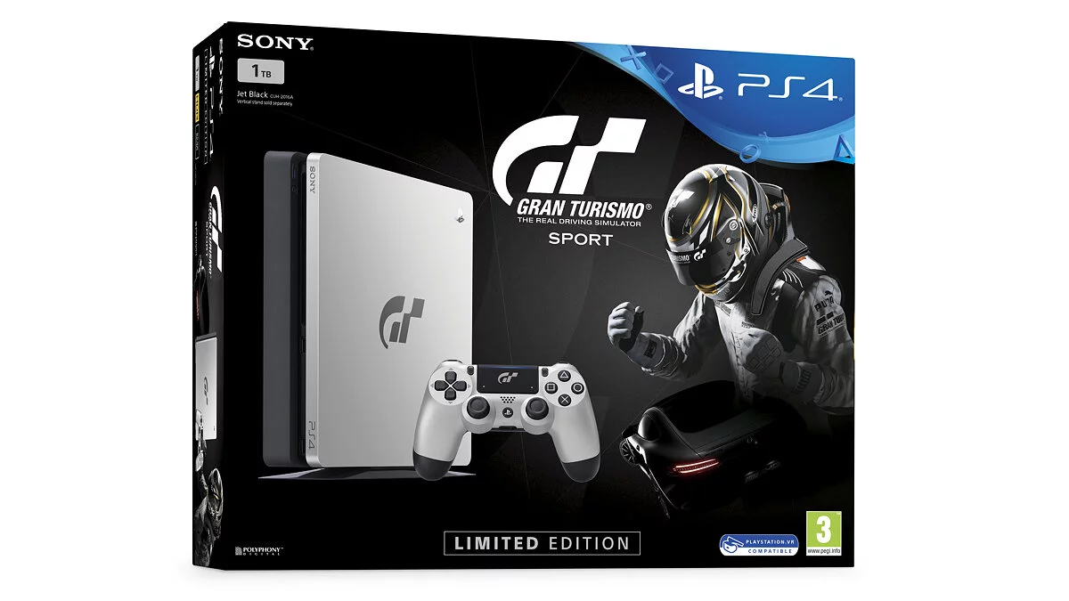 Данная консоль будет иметь жесткий диск на 1 Тб, эксклюзивную лицевую панель в серебряном цвете, а также беспроводной контроллер Dualshock 4, который будет в серебряном цвете и с логотипом GT. Кроме того, в состав лимитированного издания будет входить копия игры Gran Turismo Sport, бонусные кредиты, внутриигровые стикеры, аватары и хромированный внутриигровой шлем.