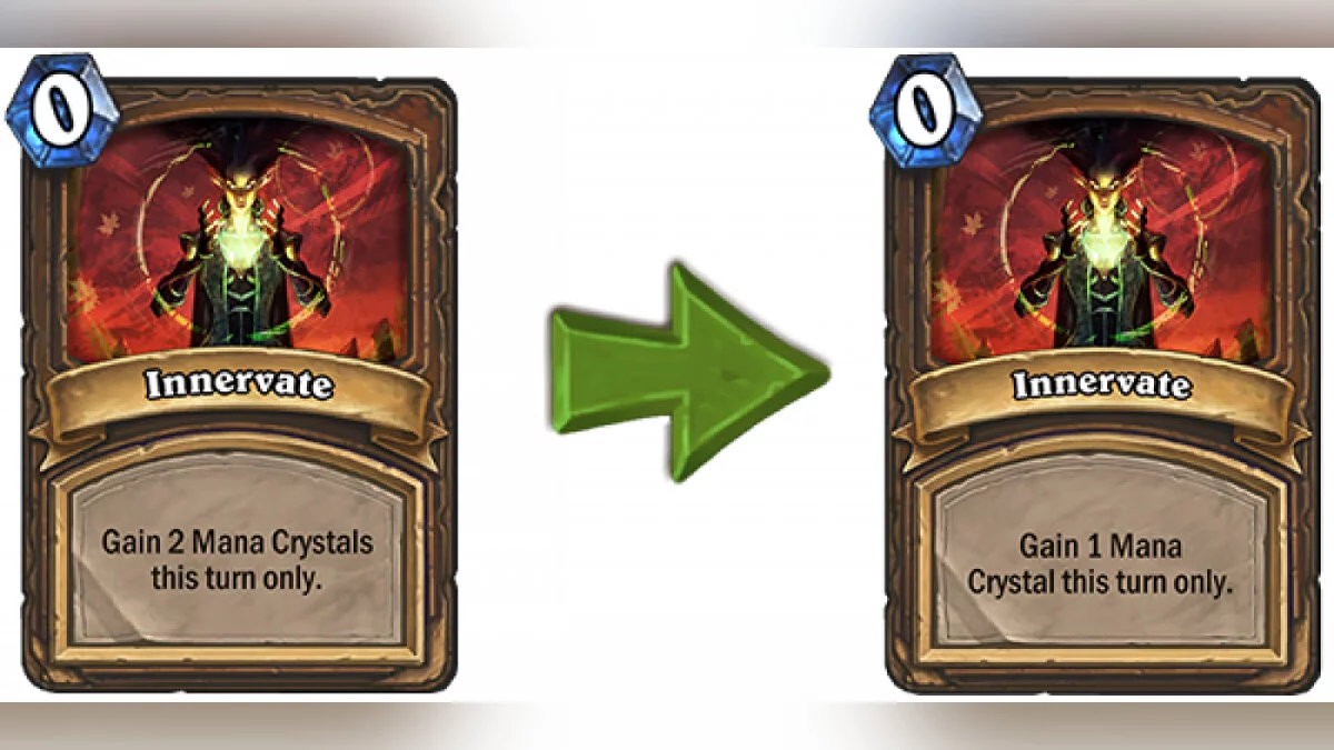 Заклинания друида «Озарение» (Innervate) теперь будет давать лишь один кристалл маны на ход вместо двух. Разработчики объяснили это решение тем, что данная карта находилась в каждой без исключения колоде друида и позволяла ему с легкостью обгонять по темпу соперников. По их задумке, это изменение уберет «Озарение» из большинства колод, а останется она лишь там, где потребуются маленькие заклинания, например, для прокрутки «Гоблином-аукционистом».