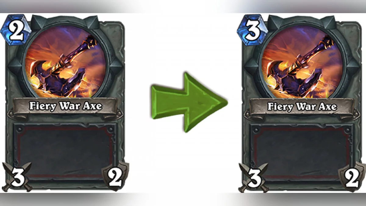 Одна из самых популярных карт воина, «Огненная секира» (Fiery Axe), тоже неожиданно увеличилась в стоимости — 3 маны вместо 2. В этом нерфе видится ослабление могучих Пират-воинов, но с ними пострадают и переживающие не лучшие времена Контроль-воины.