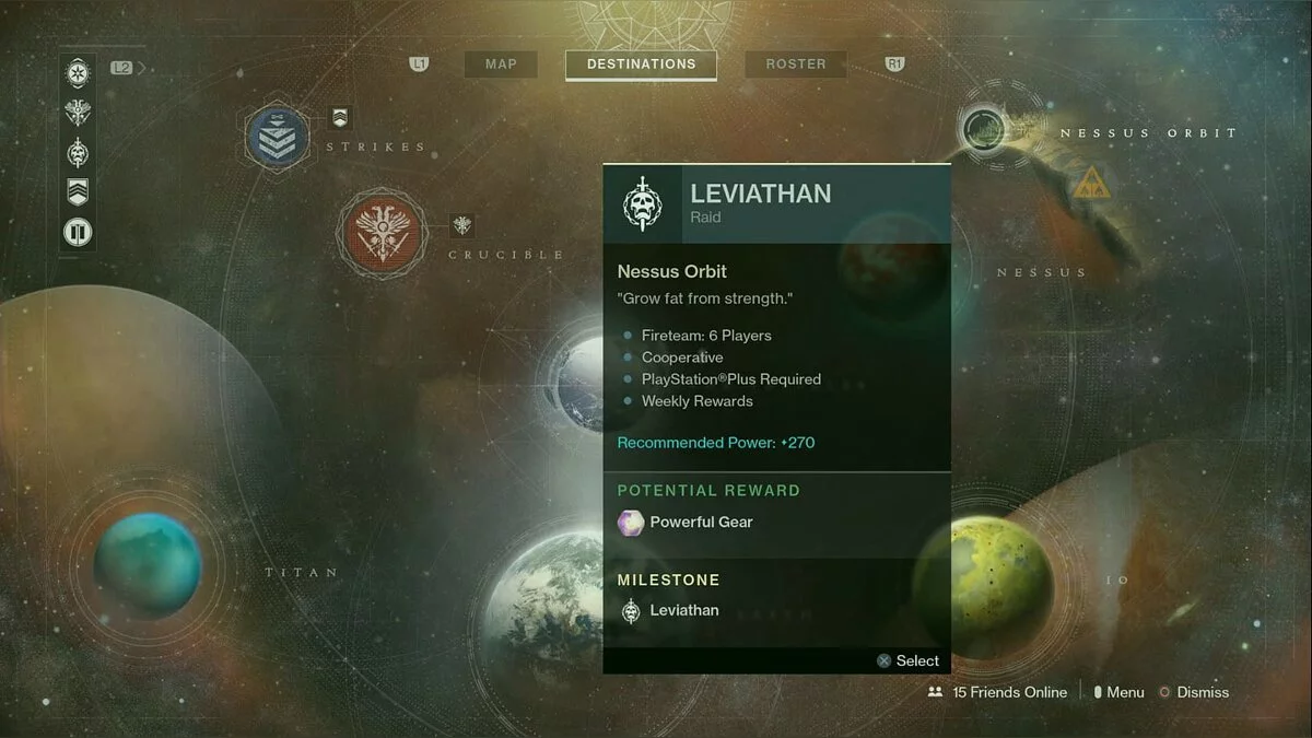 «Левиафан» доступен на экране выбора планет. По словам директора игры Люка Смита (Luke Smith), игрокам нужно будет накопить 260-280 силы для нормального прохождения рейда. Ранее в этом году он также сказал, что цель Bungie — «построить место, которое игроки будут считать реальным ... место, которое, по вашему мнению, может существовать. Оно сильно отличается от всего, что мы делали». Если у вас возникла проблема с игрой, нужно обязательно перезапустить её.