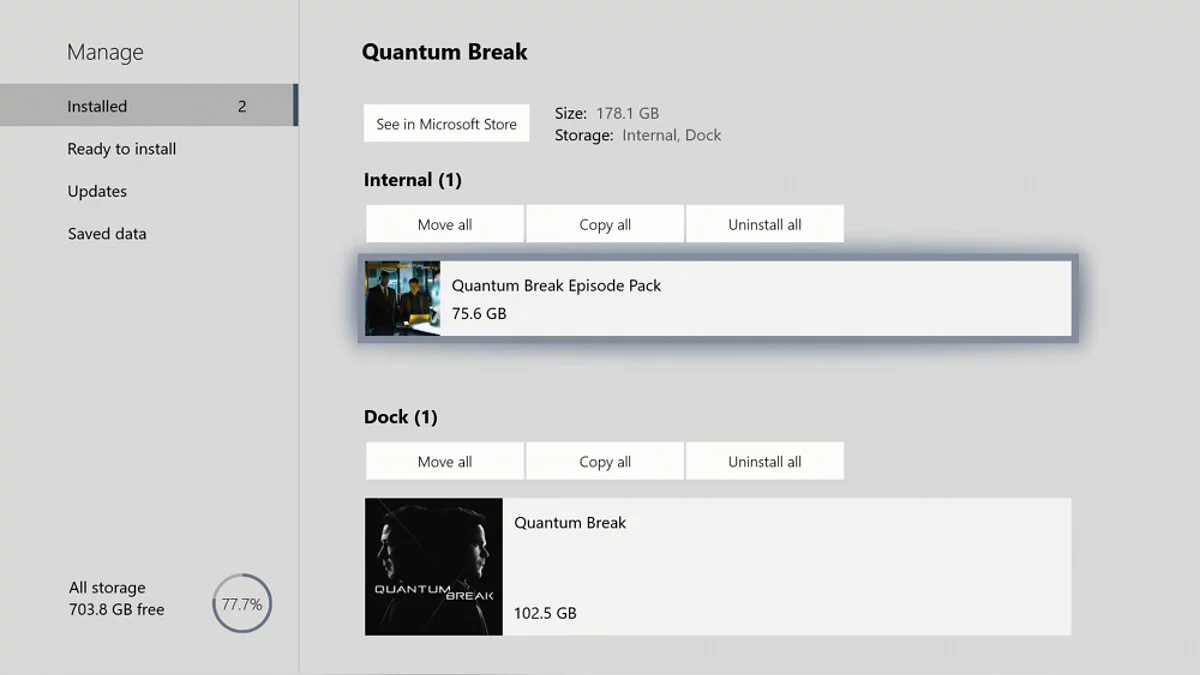 Пользователь Reddit под ником Torbold опубликовал фото патча для Quantum Break, который улучшит визуальную составляющую игры. Его размер — 94,7 ГБ. После его установки игра займёт 102,6 ГБ на жёстком диске Xbox One X. Если же вы хотите скачать Quantum Break со всеми эпизодами сериала, который раскрывает сюжет игры, то приготовьтесь пожертвовать 178,1 ГБ.