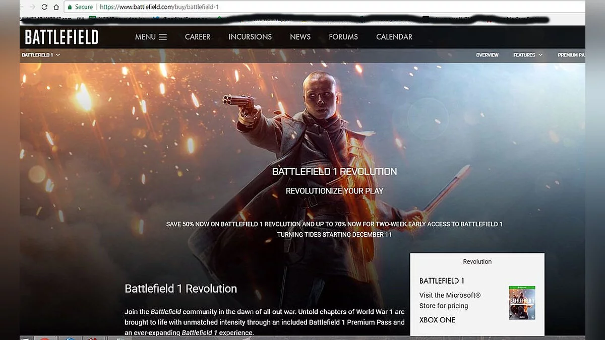 Интересно, что на скриншоте указано полное предложение с датой выхода 11 декабря, но сейчас на официальном сайте написано только: «Сэкономьте уже сейчас 50% на издании «Battlefield 1 Революция» и до 70%».
