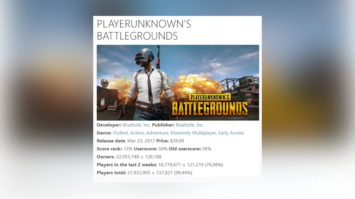 Продано 22 млн. копий Playerunknown's Battlegrounds. Игра продается по миллиону в неделю