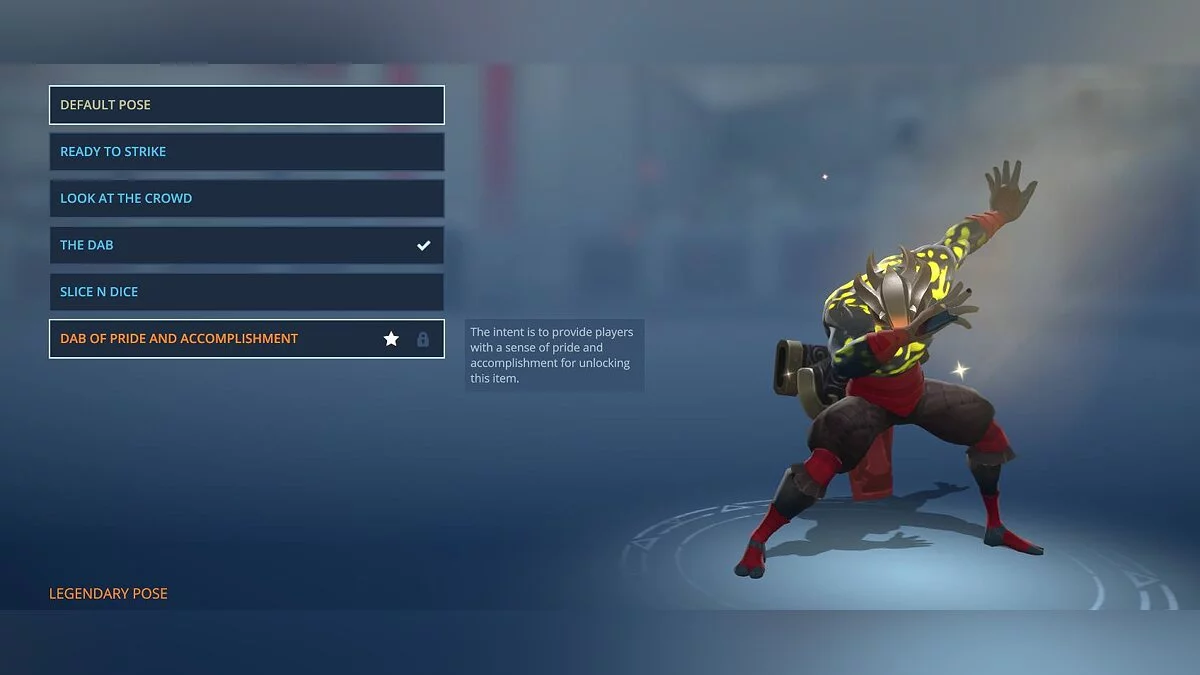 Новая поза в Battlerite, «The Dab of Pride and Accomplishment», стоит 20 тысяч монет, а её описание гласит: «Цель состоит в том, чтобы дать игрокам чувство гордости и достижения за разблокировку этой позы». Провести параллели достаточно легко.