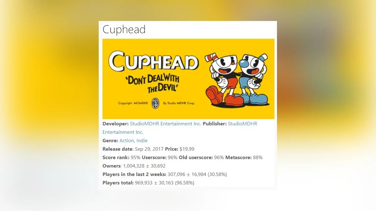Cuphead — одна из немногих игр, которые достигли миллиона проданных копий в Steam в 2017 году. Подобным также могут похвастать Divinity: Original Sin 2, Black Desert Online и Ghost Recon: Wildlands.
