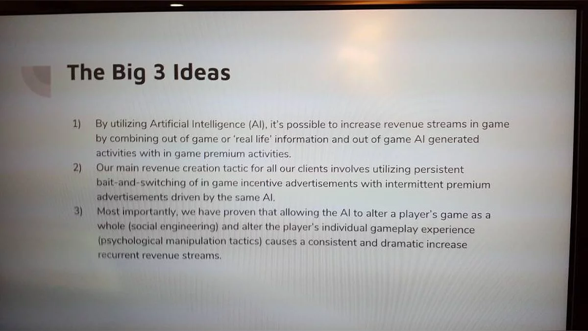 - Самое главное, мы доказали, что позволяя ИИ влиять на игру и изменять индивидуальный опыт геймера, мы добились резкого увеличения доходов.