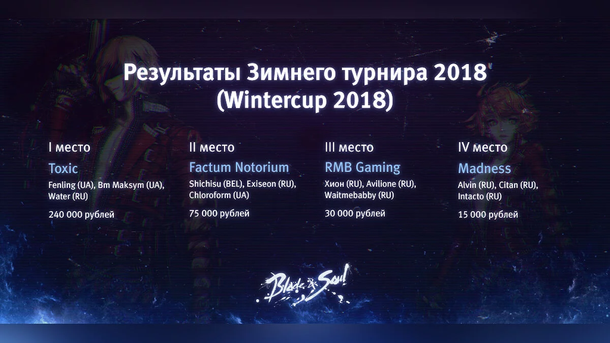 В субботу, 20 января, прошёл финал Зимнего турнира по Blade and Soul. Четыре команды из России в течение всего напряжённого дня бились не только за звание сильнейшей, но и за призовой фонд в 360 тысяч рублей. Результаты оказались не совсем такими, как ожидали фанаты.
