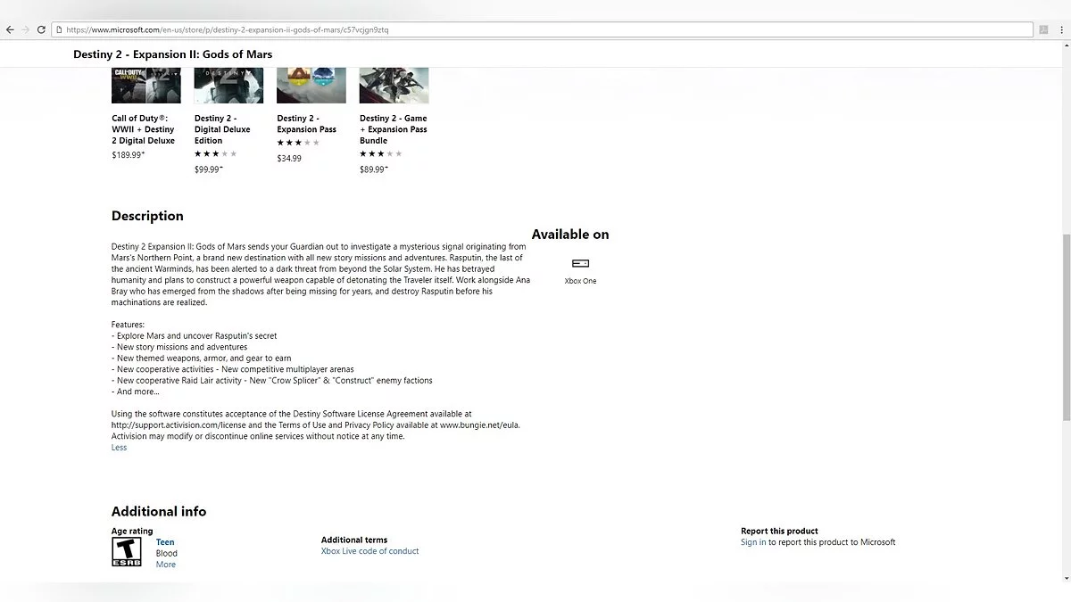 Первые слухи о втором дополнении для Destiny 2 — Gods of Mars — начали ходить ещё в декабре. Тогда слив произошёл в японском PlayStation Store, однако подтвердить их правдивость до сих пор не удалось. На этот раз детали прибыли из магазина Xbox.