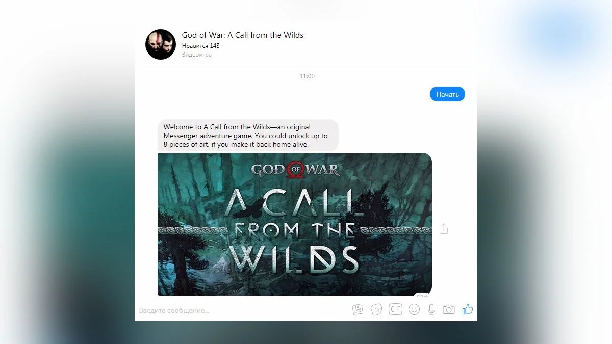 Sony объединилась с Facebook и выпустила текстовое приключение God of War: Call Of The Wilds в преддверии выхода новой God of War. Оно доступно в приложении для телефонов от Facebook — Messenger.