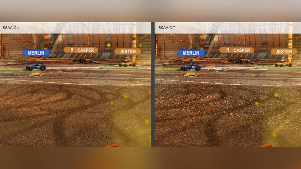 Сравнение Rocket League (слева — включенное SSAA, справа — отключенное):