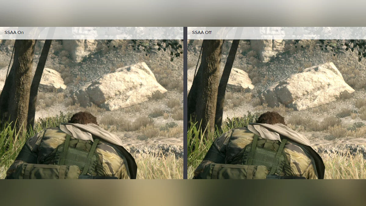 Сравнение Metal Gear Solid 5: The Phantom Pain (слева — включенное SSAA, справа — отключенное):