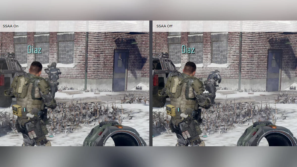 Сравнение Call of Duty Black Ops 3 (слева — включенное SSAA, справа — отключенное):
