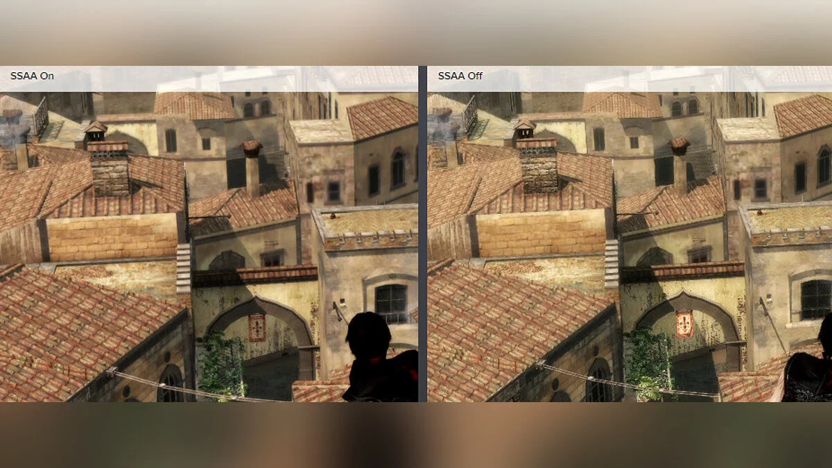 Сравнение Assassin's Creed The Ezio Collection (слева — включенное SSAA, справа — отключенное):