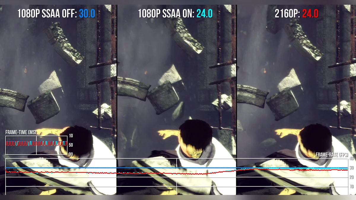 На PS4 Pro пользователь самостоятельно может выбирать, в каком режиме ему играть: в 4K, либо с в 1080p, но с включенным сглаживанием. Технология SSAA в прошивке 5.50 уменьшает масштаб изображения, создавая в процессе красивое сглаживание по краями объектов. Изображение в таком случае, судя по тесту, в некоторых играх кажется немного замыленным. Однако нельзя не упомянуть, что мерцания и подергивания при сглаживании также сводятся к минимуму.