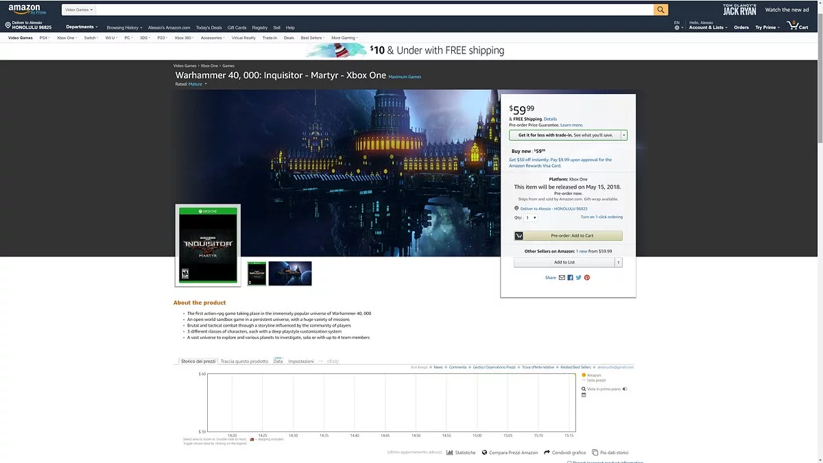 Стала известна возможная дата выхода фантастического ролевого боевика с видом от третьего лица Warhammer 40K: Inquisitor — Martyr. Если верить информации от известного магазина Amazon, релиз игры от NeocoreGames состоится 15 мая 2018 года.