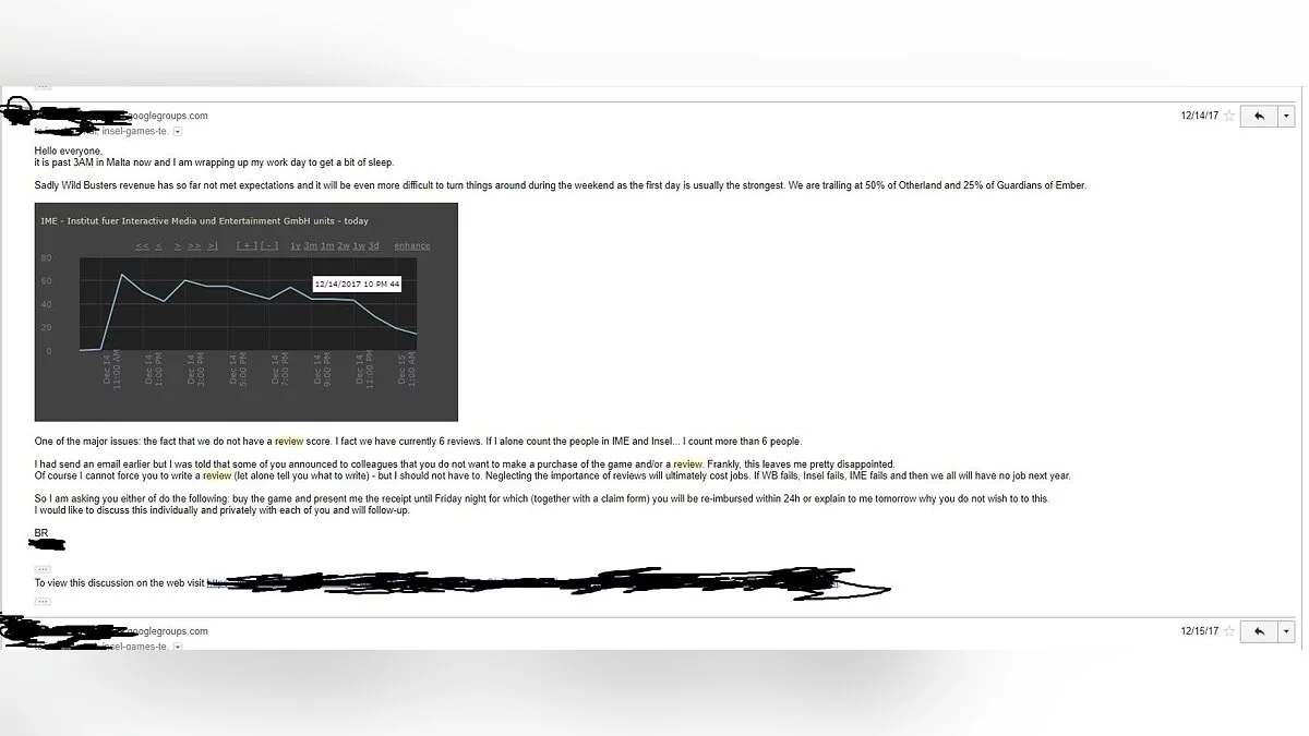 Ситуация о накрутке оценок приняла огласку еще в прошлом году, когда на Reddit было опубликовано сообщение, где указывалось, что глава Insel Games угрожает своим сотрудникам увольнением и заставляет их покупать игры для написания положительных отзывов.