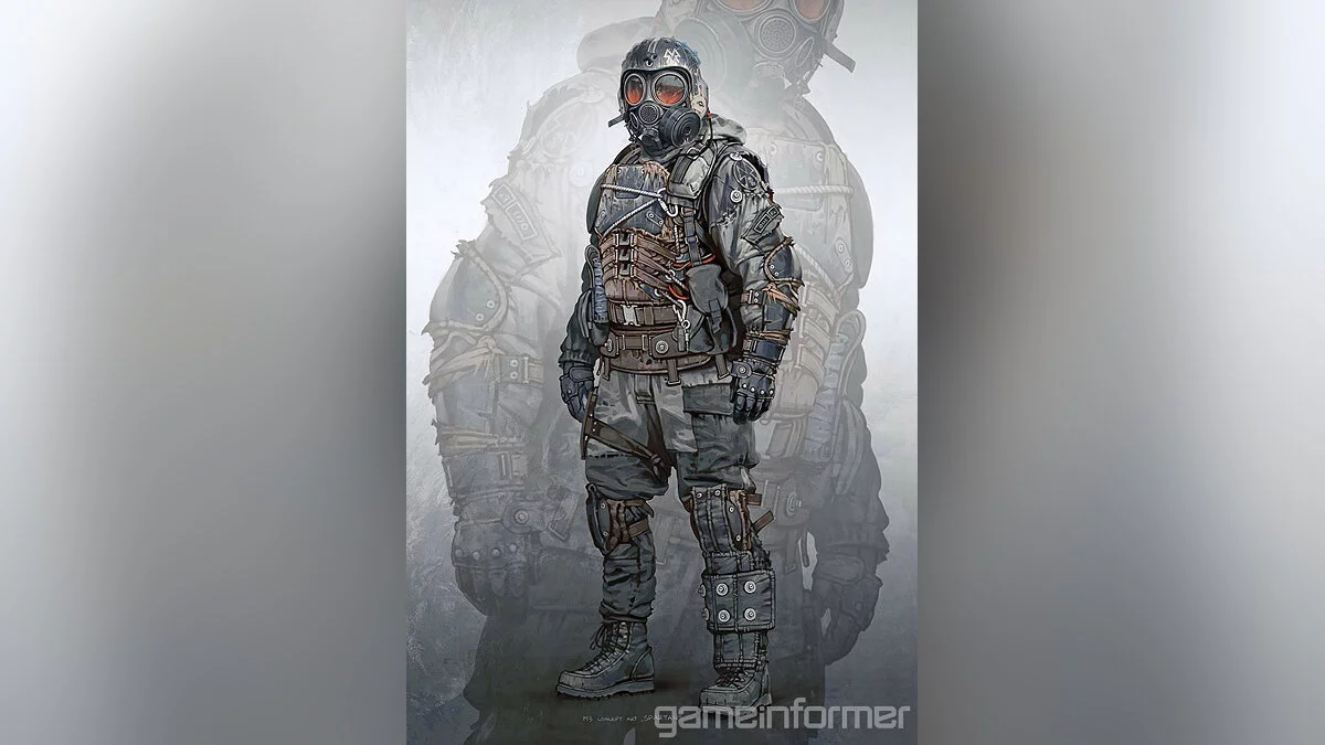 На двух артах нарисованы бойцы: один из хорошо знакомой группировки «Спарта», а второй из совершенно новой организации, которая будет противостоять Артёму. Костяной костюм безусловно вселяет страх.