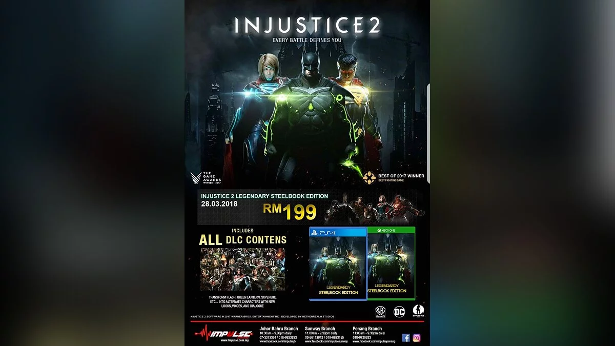 По информации, опубликованной на Amazon, Injustice 2: Legendary Edition выйдет 27 марта для PlayStation 4 и Xbox One. Эту же дату выхода указывает и малайзийский магазин Impulse.