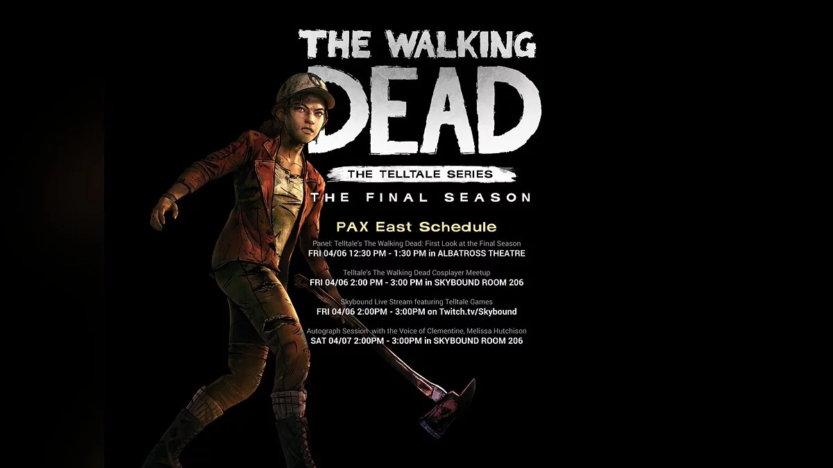 Get your first look at The Walking Dead: The Final Season at our PAX East panel next Friday, April 6 at 12:30pm ET. You can also stream it from home on Twitch.
