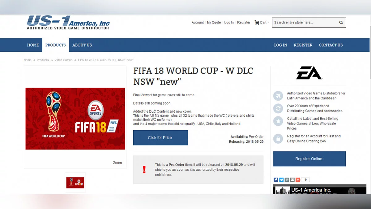 Информация неофициальная, так что относиться к ней стоит с некоторой долей скептицизма. Поводом к этой заметке стало предложение купить DLC FIFA 18 World Cup для FIFA 18 у дистрибьютора видеоигр US-1 America:
