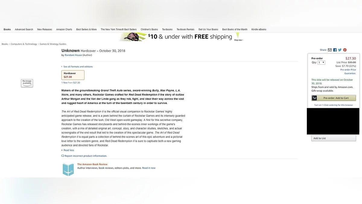 Выход Red Dead Redemption 2 состоится уже 26 октября этого года на PlayStation 4 и Xbox One. Артбук, если верить Amazon, выйдет 30 октября. Rockstar Games пока не подтвердила информацию об артбуке.