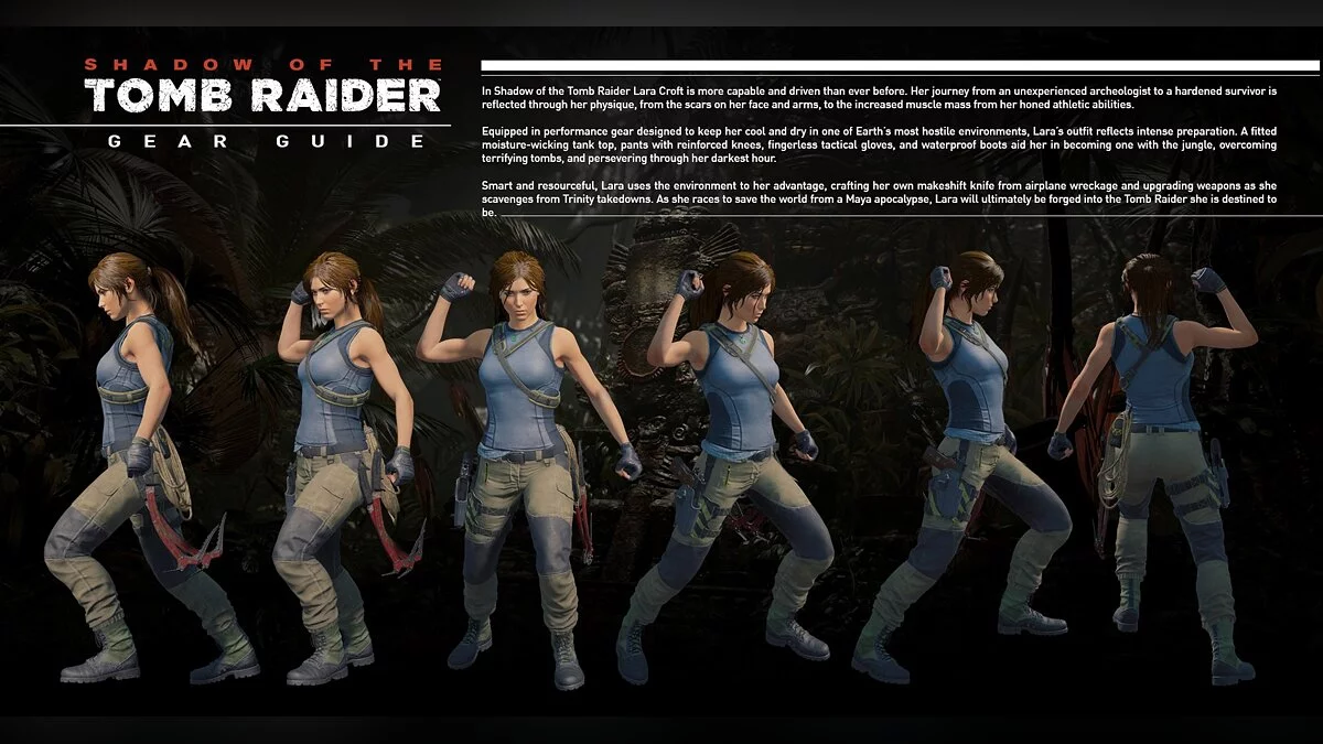 Судя по первым изображениям Лары Крофт, можно заметить, что героиня стала гораздо атлетичнее, чем в предыдущих играх серии. Кроме того, лицо героини также немного изменилось по сравнению с Tomb Raider 2013 года и Rise of the Tomb Raider.