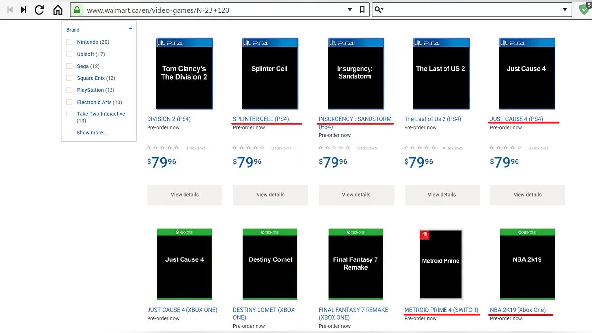 Сразу хотим сказать, что вся информация не проверена и может быть банальной ошибкой работников магазина или намеренным вбросом. Однако на сайте Wallmart.Ca можно найти и оформить предварительный заказ на много новых, пока еще неанонсированных проектов. В различных версиях — для Xbox One и PS4.