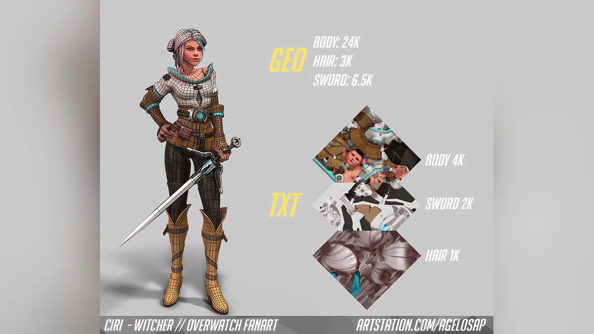Художник опубликовал несколько изображений, демонстрирующих Цириллу, известную многим игрокам прежде всего по видеоигре The Witcher 3: Wild Hunt. На изображениях Цири представлена в более мультяшной форме, которая идеально соответствует стилистике персонажей Overwatch.