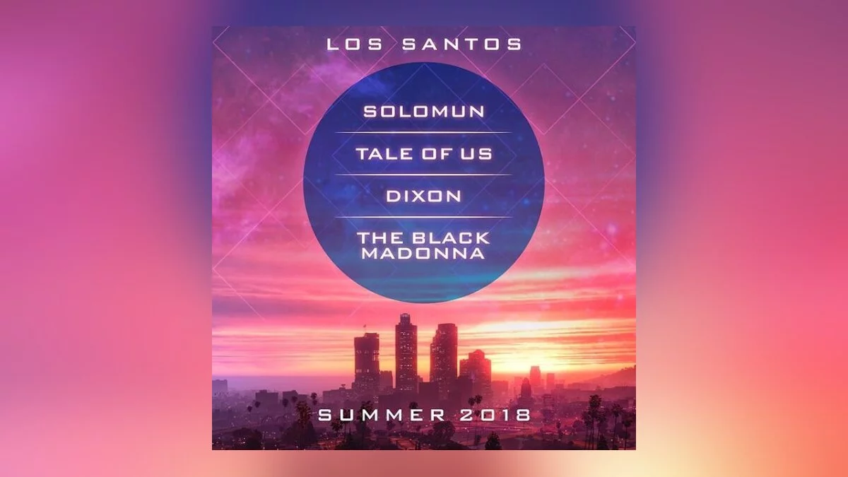 Изображение означает, что летом 2018 года для GTA V добавят треки групп, перечисленных на картинке: Solomun (признано в России экстремистской организацией), Tale Of Us (признано в России экстремистской организацией), Dixon (признано в России экстремистской организацией) и The Black Madonna (признано в России экстремистской организацией). В Instagram-аккаунтах исполнителей находятся посты, подтверждающие их связь с GTA Online: