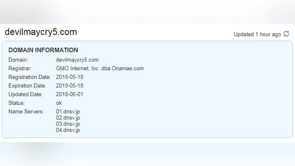 GMO Internet ответственна за домены таких игр, как Monster Hunter World и Resident Evil 7: Biohazard. Стоит заметить, что несколько дней назад Devil May Cry 5 также засветилась в одном австрийском магазине.