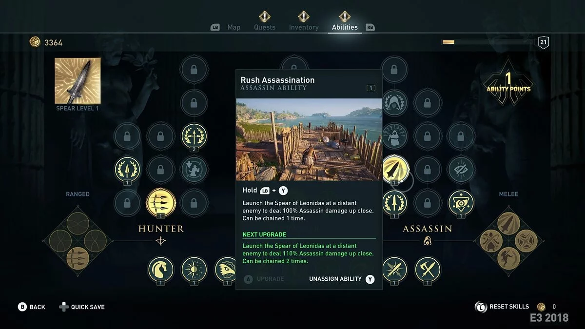 Также можно увидеть скриншоты одного из меню, в котором геймеры будут учить и улучшать умения главного героя, карту игрового мира и интерфейс персонажа, где можно будет менять снаряжение.