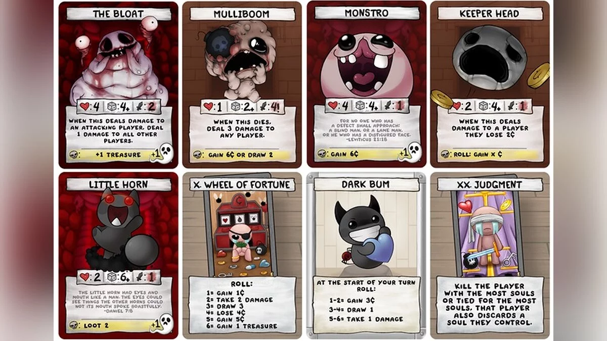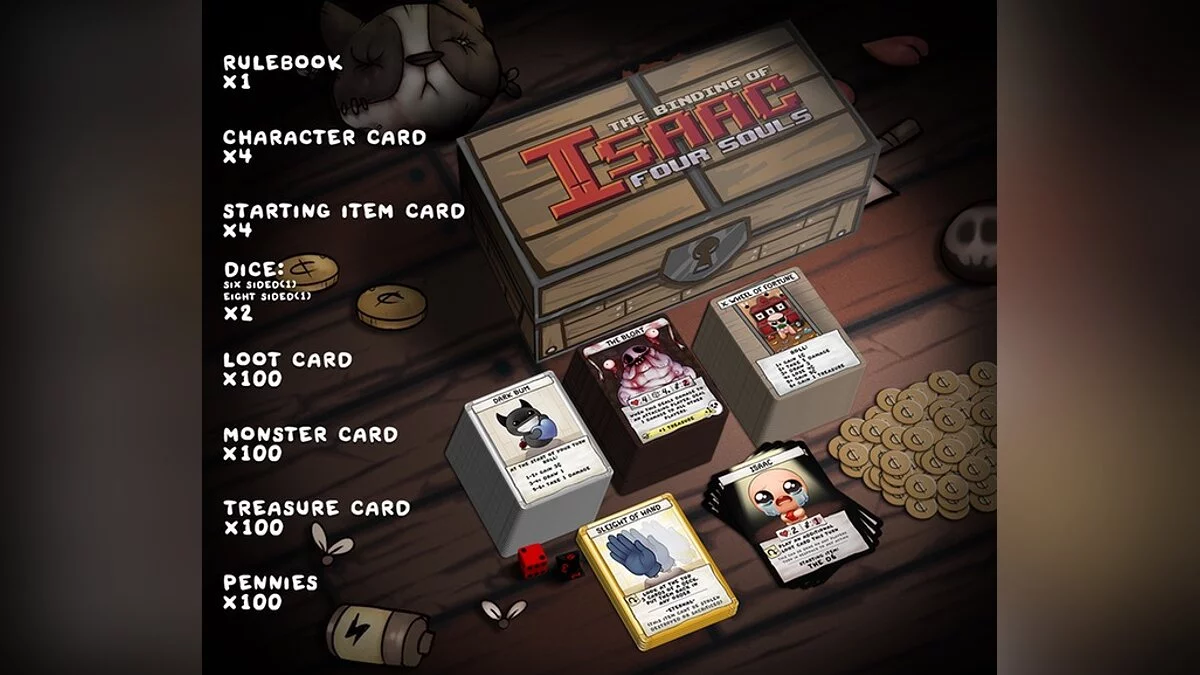 The Binding of Isaac: Four Souls — это карточная настолько игра, в которую могут играть до четырех человек. Игрокам предстоит уничтожать монстров при помощи карт, зарабатывая при этом специальные очки и души. Побеждает тот, кто первым получит четыре души.